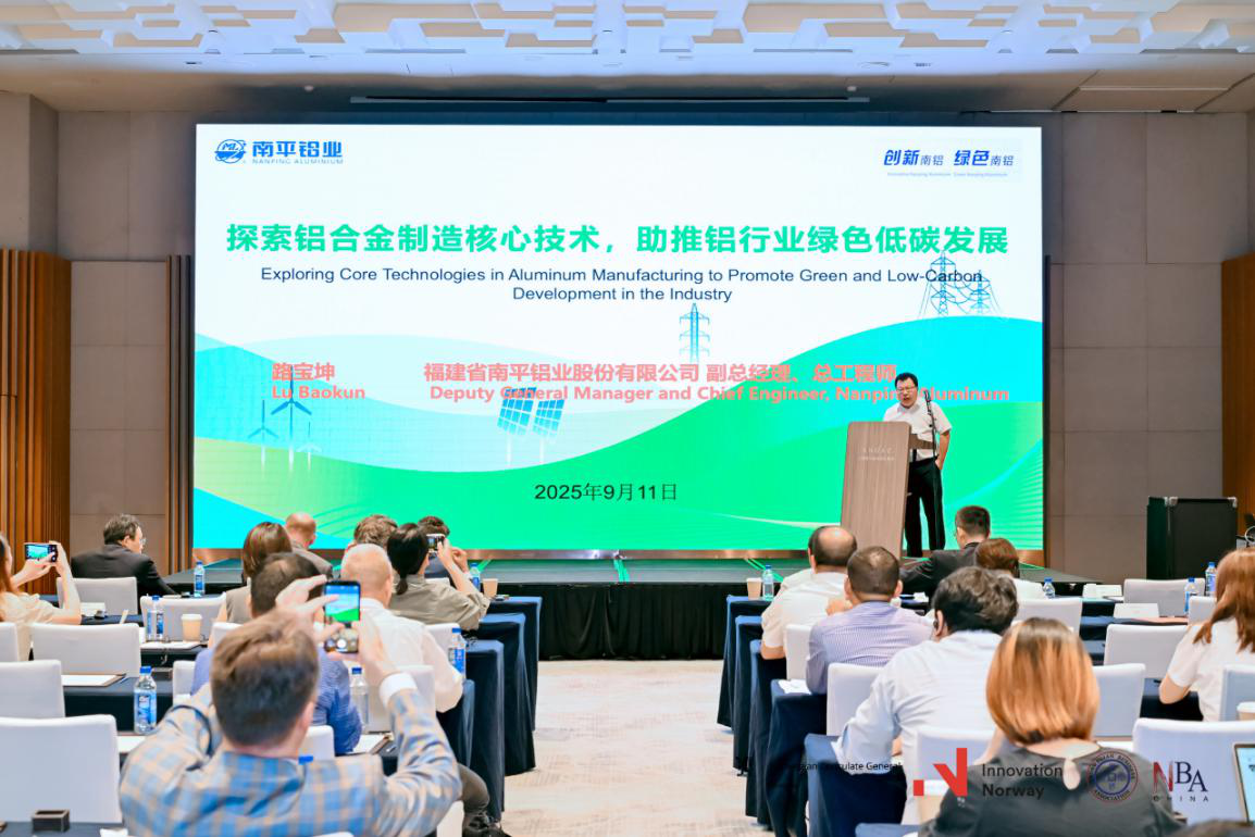 9月11日,由挪威駐華大使館、挪威創新署等機構主辦的“2025共筑綠色未來:挪威-中國綠色轉型論壇”上海站活動成功舉辦。來自上海政府、企業及創新領域的代表齊聚一堂,共同探討綠色轉型的前沿趨勢與實踐路徑,助力全球低碳經濟轉型。南平鋁業公司應邀出席論壇,公司副總經理、總工程師路寶坤作題為“探索鋁合金制造核心技術,推動鋁行業綠色低碳發展”的主旨報告,分享了鋁加工行業在綠色轉型方面的實踐經驗。